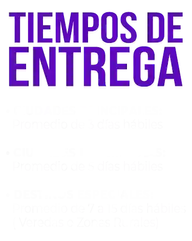 A Bogotá, Medellín, Cali y Barranquilla: 2-5 días. Otras ciudades: 5 - 8 días hábiles.